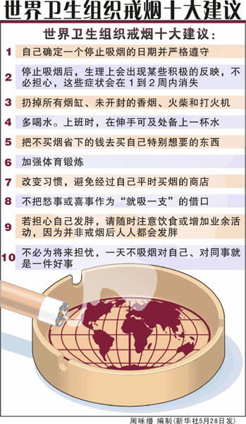 为了有效控制烟草,减少烟草的危害,2003年5月,世卫组织通过世界第一个旨在限制全球烟草和烟草制品的公约,即《烟草控制框架公约》。2005年2月《公约》正式生效。