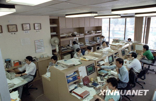 1979年10月4日,中国第一家信托机构——中国国际信托投资公司宣告成立,标志着信托业在中国的重新崛起。此后,从中央银行到各专业银行及行业主管部门、地方政府纷纷办起各种形式的信托投资公司。信托业作为现代金融业的重要支柱之一,与银行、证券、保险并称为现代金融业的四大支柱。这是该公司业务部的一个办公室(资料照片)。