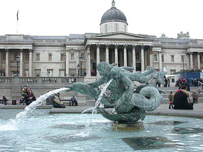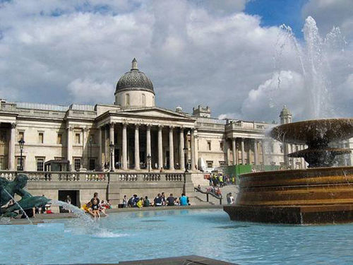 英国国家美术馆(The National Gallery,又译为国家艺廊),是位于英国伦敦市中心特拉法加广场的正北方向,相当于北京天安门广场正北方向的故宫博物院。国家美术馆又称伦敦国家美术馆,成立于1824年。当时仅有38幅画作,从这些由乔治四世说服政府购买林布兰、拉尔等人的38个作品,陆续拓展为现在以绘画收藏为主的国家级美术馆。