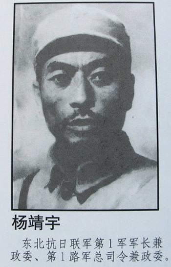 杨靖宇,东北抗日联军领导人,民族英雄,原名马尚德,生于河南省确山县李湾村。1927年3月,领导了确山农民起义。 1934年任南满抗日联军总指挥、东北人民革命军第一军军长兼政委等职。1937年任东北抗日联军第一路军总指挥兼政委。卢沟桥事变后,杨靖宇发动西征,支援关内的斗争。1938年在通化、临江一带,日寇实施惨无人道的归屯并户政策,屯田移民,加强对南满抗日根据地的摧残,抗日联军的处境更加艰难。