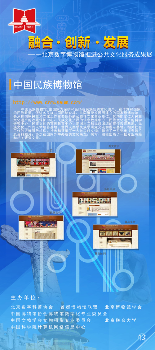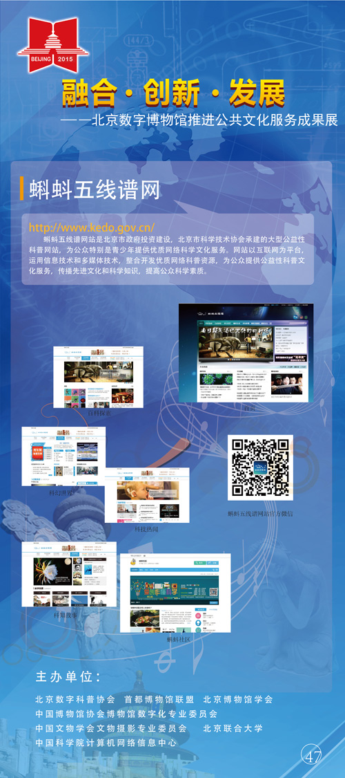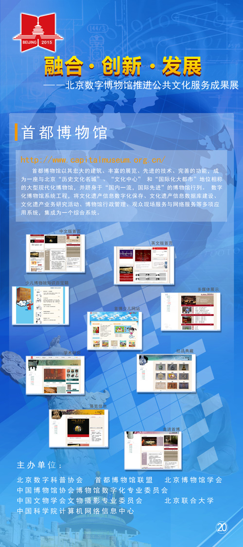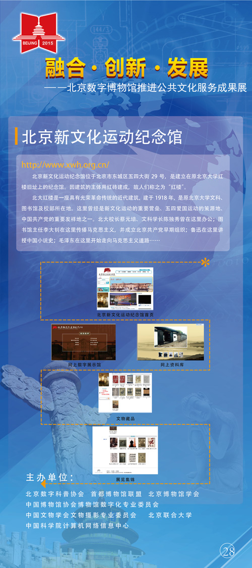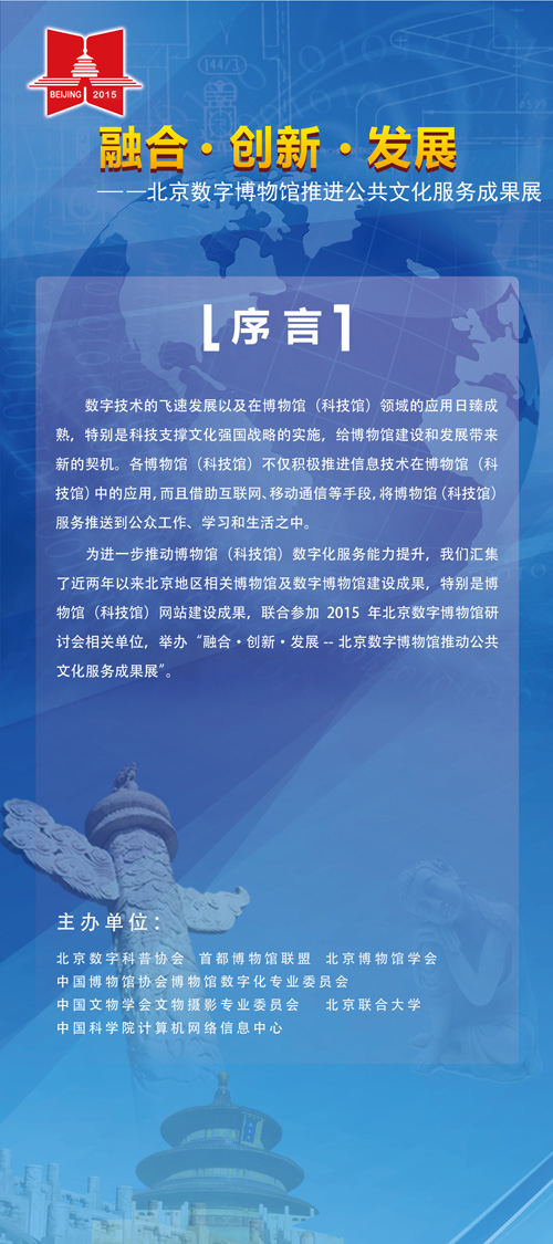 单位:北京数字科普协会、首都博物馆联盟、中国博物馆协会博物馆数字化专业委员会、中国文物学会文物摄影专业委员会、北京联合大学