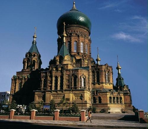 圣索菲亚教堂原是沙俄修建中东铁路时的随军教堂,始建于1923年,建成于1932年,占地面积721平方米,通高53.35米。1986年,教堂被哈尔滨市政府列为市级一类保护建筑,1996年被国务院批准为国家重点文物保护单位。1997年,哈尔滨对教堂及其周边地区进行综合整治,拆除房屋、迁出居民、辟建广场,对教堂建筑进行了修复,并辟建为哈尔滨市建筑艺术馆对外开放。