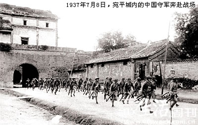 7月7日夜,卢沟桥的日本驻军在未通知中国地方当局的情况下,径自在中国驻军阵地附近举行所谓军事演习,并诡称有一名日军士兵失踪,要求进入北平西南的宛平县城(今卢沟桥镇)搜查,中国守军拒绝了这一无理的要求。日军竟开始攻击中国驻军,中国驻军第29军37师219团奋起还击,进行了顽强的抵抗。