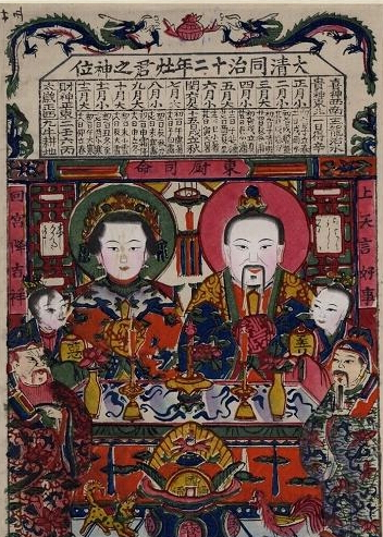 大英博物馆藏有一幅1837年的灶神形象。中国家庭通常会在灶头上贴灶君,起看护和记录家庭生活的作用。年末人们会把这幅画烧掉,这样灶君就会 去见玉皇大帝,汇报这一家这一年的生活。人们相信汇报的好坏会影响来年的生活,所以老百姓会在灶君的嘴上涂上蜂蜜,让他多说些好话。
