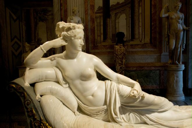 和那些动辄上百个展厅的宫殿式博物馆相比,博盖塞美术馆是罗马的一处小而美的博物馆,地上地下一共三层,主要收藏是意大利巴洛克风格的雕塑和巴洛克时代的画作,其中最具价值的无疑是贝尔尼尼和卡诺瓦的雕塑珍品,还有卡拉瓦乔和拉斐尔的画作。在真正的雕塑巨匠手下,粗粝坚硬的大理石被刻刀幻化出细腻柔软的褶皱,那种感觉相当震撼。