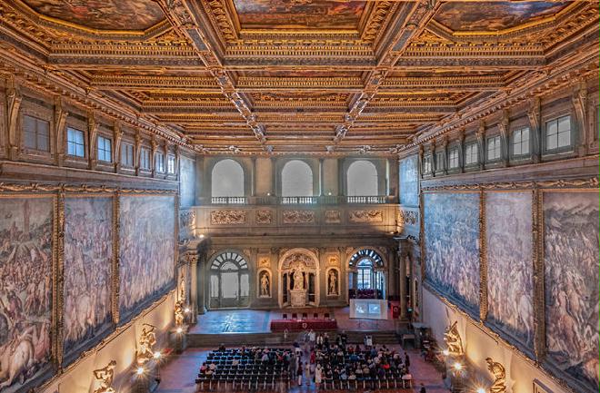 韦奇奥宫本身是一座宫殿,它还有另一个更官方的名字,叫佛罗伦萨旧宫,这个建于13世纪的古老宫殿现在仍然作为市政厅在使用,宫内拥有一个博物馆和一个500人议事大厅。它本来就是佛罗伦萨热门的必到之处,前段时间的电影《但丁密码》让这里的热门程度又增加了许多。