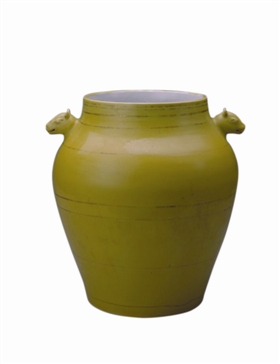 明弘治黄釉金彩牺耳罐