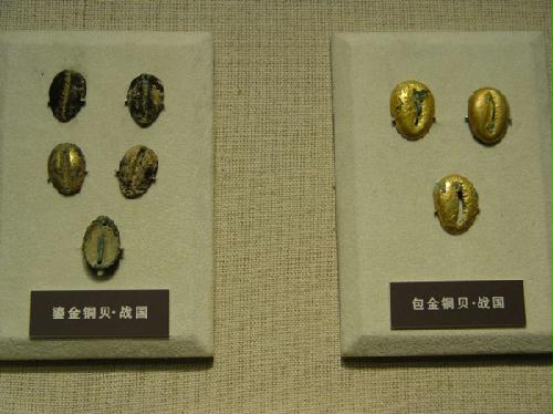 博物馆第二层是中国古代钱币展,展示了从先秦到清末中国的各类货币,其中不乏难得一见的珍品。天然贝币最漂亮和最贵重的是虎斑贝。古代中国和外国都有使用不规则金属块做流通货币使用的历史,由重量决定币值,那更原始的贝币就可能按数量决定币值。