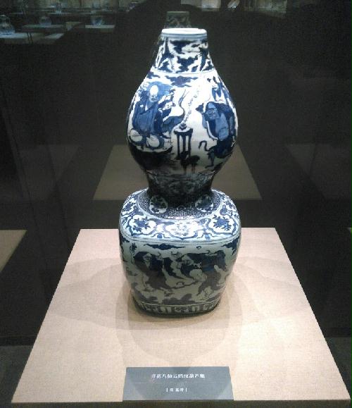 而后我又参观了瓷器展,这里的宝贝可真多啊,一件又一件精美的瓷器展现在我眼前,令我眼前一亮。这极度奢华的瓷器,历经岁月洗礼的精美瓷器,着实令我有些眼花缭乱之感。瓷器馆虽然不大,玻璃展柜里陈列着从汉代到清朝,每个时期最具特色的珍品。有元青花大洗,有五颜六色的明代五彩瓷,有纹饰带着西洋味儿的外销瓷,有世界闻名的法门寺秘色瓷;从起初颜色灰暗、厚重的汉代瓷壶,到近百年之内官窑制作的晶莹、精致的杯盘……