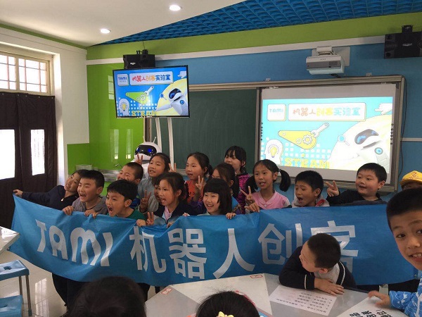 为实现“科技兴园,科技强校”的目标,落实教育部关于推进创客教育、STEAM课程,将创客空间和特色实验室等新的教育装备融入课堂等指导思想,积极采取措施切实改善中小学创客教育条件,塔米创客教育缓解师资的短缺,快速提升小学创客教育水平,培养学生的创新能力、综合设计能力和动手实践能力。塔米智能提出“机器人+创客”的解决方案,即引入机器人教学设备,结合创客教育课程和教具,打造一套适合学校大班授课的普及型机器人互动教学模式,让有意愿开展创客教育,但缺少创客师资的学校,能够快速实施创客教学计划,实现教学目标。