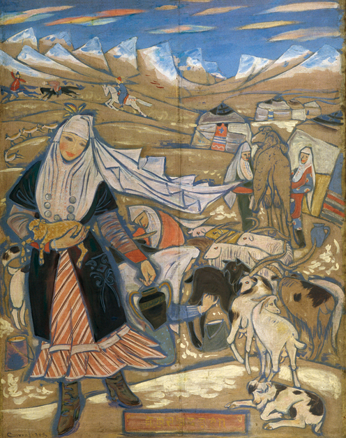 抗日战争全面爆发后,中东部地区半壁河山沦陷,国民政府迁都重庆,直接控制西南、西北。东部企业和学校纷纷内迁,很多军工、能源、加工工业迅速完成在云、贵、川等地的布局,使西部成为当时的经济文化重心。当年中央大学搬迁,以徐悲鸿主政的中央大学艺术系师生在磐溪留下了许多不朽之作。美术力量聚集重庆形成了以重庆为中心并与西南城市桂林、昆明、贵阳犄角相依的美术格局。内迁的美术家经历了动荡时代下文化空间的分流与聚合,内心经受震动并完成向现实的艰难转型。他们中有的如张大千潜心洞窟,在飞天、观音的彩粉与线条的交织中,摹写美的神韵;常书鸿则将人生的理想寄托于敦煌的辉煌。有的如庞薰琹、王子云、司徒乔等跟随国民政府组织的考察团深入西南、西北考察研究艺术文物;有的如吴作人、赵望云、关山月等孑然一身,万里投荒,将自己的艺术追求放在川、康、甘、青等广袤的高原山川、河流洞窟之间,深入那里的民族生活现实,追寻伟大传统之源。他们不畏艰险,千里迢迢,以西部为基地写生作画,考察游历,展开20世纪中国美术的西部之旅。独特的自然风貌和渗入内心的历史情怀,使艺术家们的精神世界回萦着铿锵高昂的时代节律。高天碧蓝,白云接地,莽莽黄土,大漠平湖,佛乐渺渺,情歌悠悠……而西部建设的大潮为这片古老的土地增添了现代文明的符号:井架凌空,天路如虹,梯田层层,步步云梯……这些鲜明而富于特色的景象使艺术家们获得崭新的感受,使墨、彩油然融入新时代、新形式的表现与创造中。从古典主义到印象派;从巴比松画派到巡回画派;从宋元到石涛;从文人画到现代中国画改良,中国艺术家们以自己的实践推动了油画民族化和中国画现代化的自觉建构。