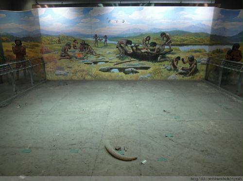 这里展出的旧石器时代的石制品、骨制品和用火遗迹等古代遗存均保持出土时的原貌。博物馆将尽量按照原貌陈列在原址发现的石砧、石锤、石核、石刀,还有骨制的铲、刀等工具,在这里还陈列有更生纪晚期人类用火的遗物、遗迹和原始牛、鹿、驼鸟的骨胳。展览配有大量的照片、雕塑,再现了25000年前人类在今天的王府井地区生活、狩猎、制造工具的场景。