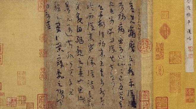 此卷为西晋著名文学家、书法家陆机(261—303)写的一封信札,共9行,计84字,是用秃笔写于麻纸上的。因文中有“恐难平复”之语,故名。全帖笔意婉转,风格平淡质朴,是现存年代最早并真实可信的西晋名家法帖,它一方面是隶书发展过程中的标本,更是汉字由隶书向楷书过渡的重要佐证,在中国书法史上占有重要地位。《平复帖》内容涉及3个人物,贺循,字彦先,是陆机的朋友,身体多病,难以痊愈。陆机说他能够维持现状,已经可庆,又有子侍奉,可以无忧了。吴子杨,以前曾到过陆家,但未受到重视。如今将西行,复来相见,其威仪举动,自有一种较前不同的气宇轩昂之美。最后说到夏伯荣,他因寇乱阻隔,没有消息。此帖宋代入宣和内府,明万历间归韩世能、韩逢禧父子,再归张丑。清初递经葛君常、王济、冯铨、梁清标、安岐等人之手,后归入乾隆内府,再赐给皇十一子成亲王永瑆。光绪年间为恭亲王奕訢所有,并由其孙溥伟、溥儒继承。后溥儒为筹集亲丧费用,将此帖待价而沽,经傅增湘从中斡旋,最终由张伯驹以巨金购得。张伯驹、潘素夫妇于1956年将此帖捐献国家。