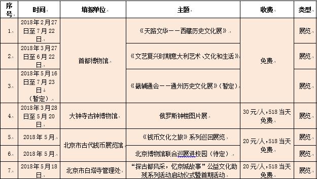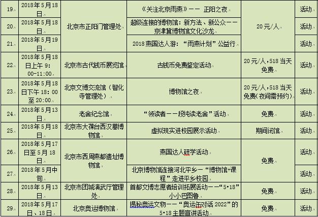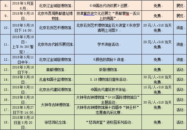 2018年“5.18国际博物馆日”北京市文物局局属博物馆主题活动清单