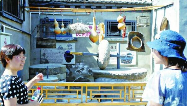“这鞋楦有一百来年了,是我奶奶的妈妈传下来的。”距离白将军胡同不远的熊家胡同,一个个古色古香的中式多宝槅整齐安装在青砖墙上,里面摆放着老式收音机、电话、粮票、鞋楦等从居民家中征集来的老物件。这个独具特色的墙上博物馆,展示着老北京的民俗文化,吸引了不少游客慕名而来。