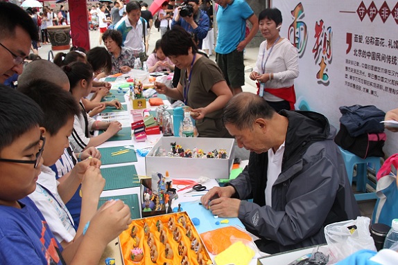 在博物馆西路设置的体验区持续了两天的热闹非凡,刚进入西路就是义卖活动现场,义卖品是传授非遗技艺的老师以及学生亲手制作的传统文化手工作品,义卖所得全部捐向红十字会,让孩子们在传承非遗的同时,感受成长,感受责任。沿着路走便来到了动手实践区,在这里可以体验到近28个传统文化项目,家长们受邀和孩子一起动手实践,这种让传统文化走进家庭的体验模式让全家人一起用双手触摸传统文化的大门,感受传统文化的魅力。这些项目分别自非遗课程以及学校特色社团的项目,充分体现朝阳区传统文化进校园内容的丰富性。传统文化作品展区里展示的是朝阳区第二十届魅力非遗作品展的优秀作品“小咖作品秀”,通过这些作品让人们感受到传统文化进校园成果的丰硕。